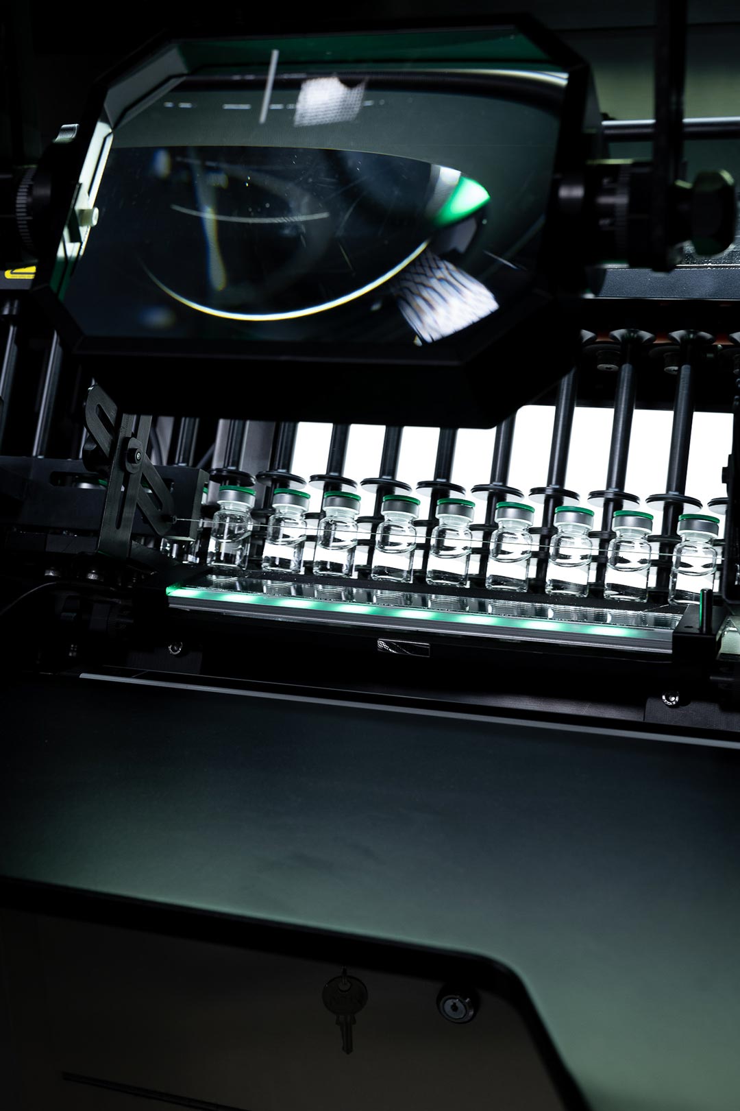 与纯人工检测相比,半自动检测通过对容器的自动进瓶、输送和剔除,使产品处理更高效。西林瓶在检测前被快速旋转以搅动颗粒,随后进行360度慢速旋转,确保瓶体表面被全面检查。VIS 1000 让您可以轻松检测澄清液体、悬浮液和冻干西林瓶产品,有助于减少时间和成本。